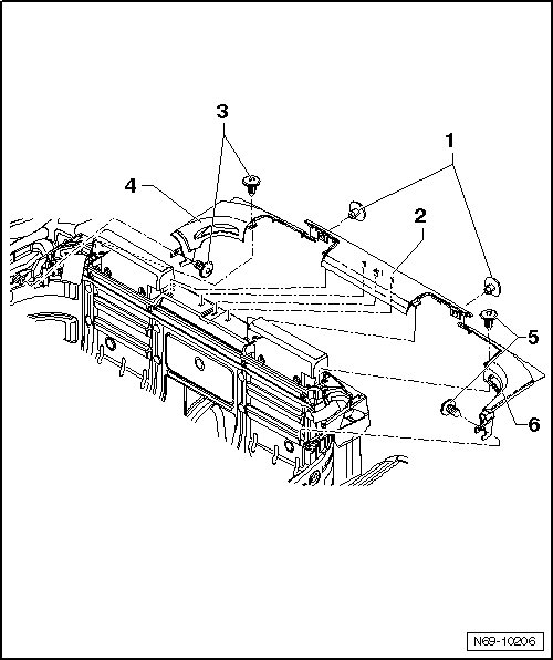 - Remove the two screws - 5 - (1.5 Nm) and remove left rollover protection trim - 6 - up out of mounts.