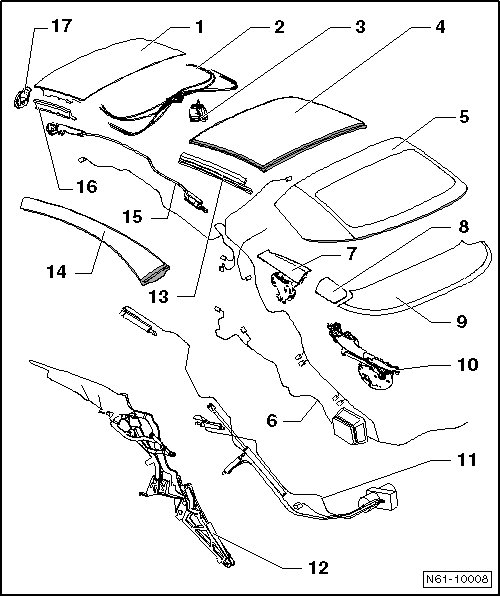 • Removing, refer to => [ Roof Pillar, Removing ] Roof Pillar, Removing