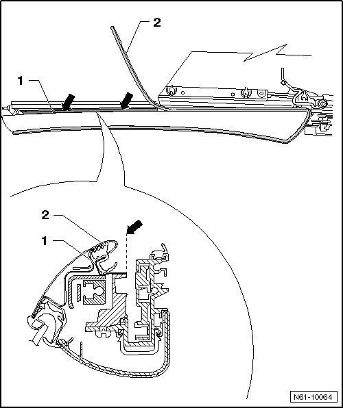 - Turn the guide rail until the clip audibly latches into the roof pillar - arrow b -.