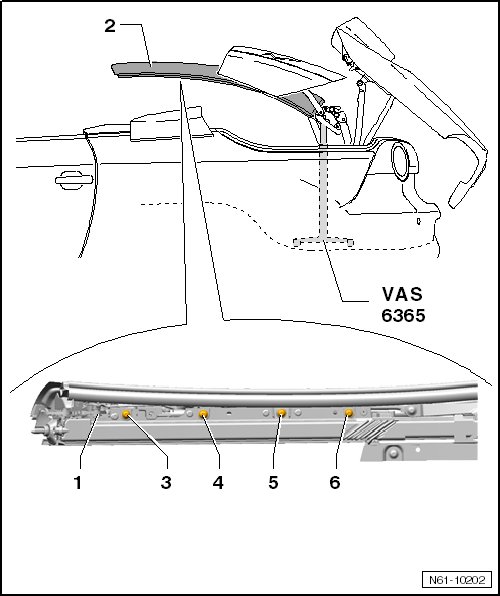 - Place hinge supports (VAS 6365) in lowest position - 2 -.