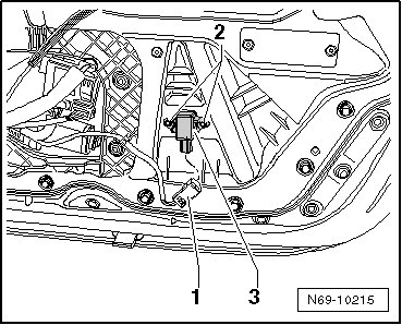 - Disconnect the wiring harness - 1 - from the crash sensor - 3 -.