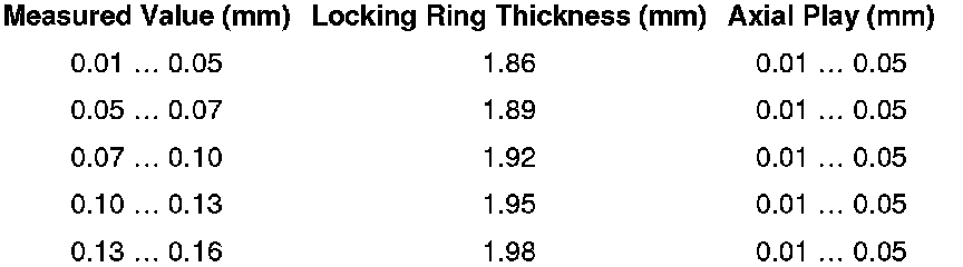 - Select the locking ring according to the table.