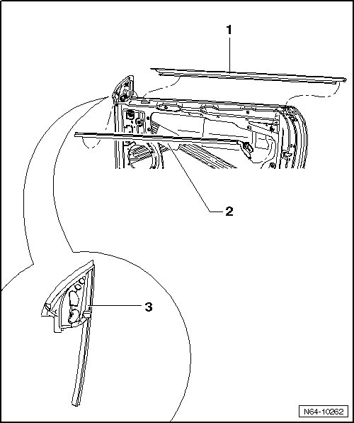- Press inner window recess seal - 2 - evenly onto flange. Note connection to adjacent door seals when doing so.