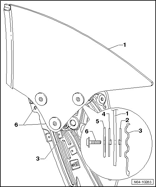 - Place side window - 1 - on window regulator - 3 -.