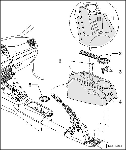 - Remove the ashtray - 1 - from center console and (depending on vehicle equipment) disconnect the wiring harnesses.