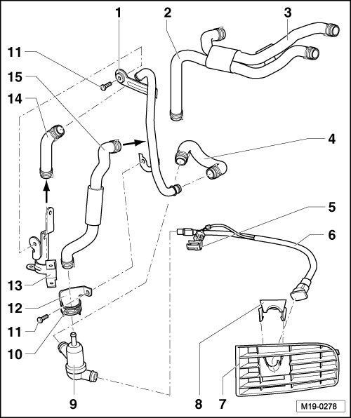 15 Coolant Hose from the Engine Pre-Heater to the Coolant Hose on the Cylinder Block