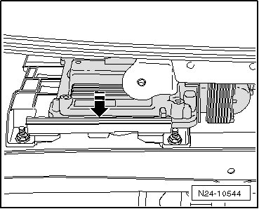 - Push the retaining frame downward in the - direction of the arrow - and remove the ECM.