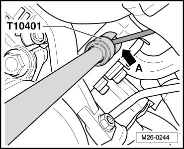 - Make sure the wire from the EGR temperature sensor is guided into the groove on the 14 mm socket (T10401) - arrow A -.