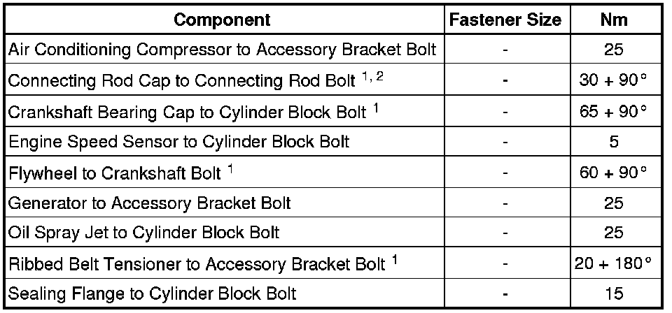 Crankshaft, Cylinder Block -Fastener Tightening Specifications