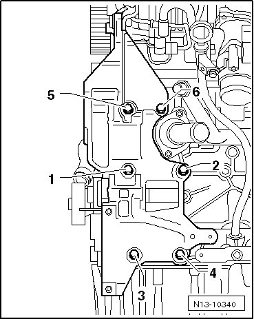 - Tighten the new bolts - 1 through 3 - in sequence to 40 Nm + an additional 180° (1/2) turn.