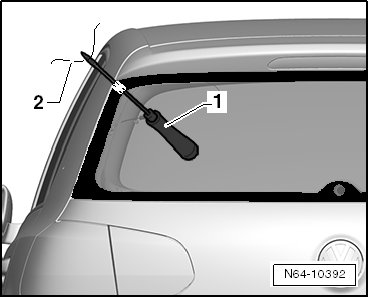 - Pull the cutting wire - 2 - inside through adhesive using (V.A.G 1474/2) - 1 -.