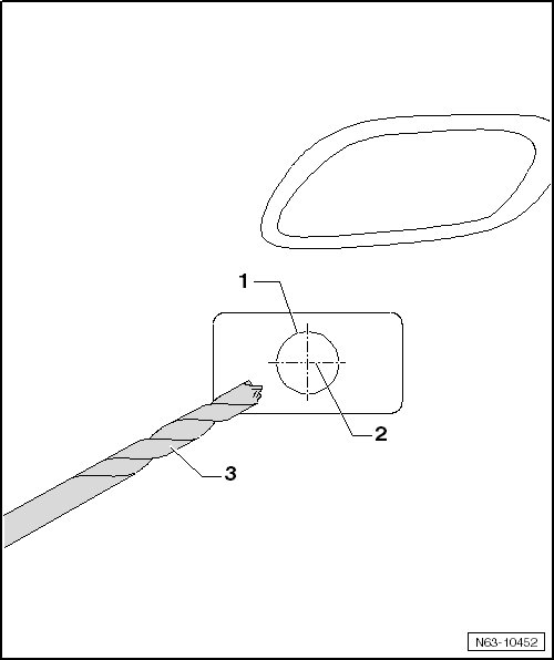 - Drill the holes from inside outward with a tool set and supplied drill - 3 -.