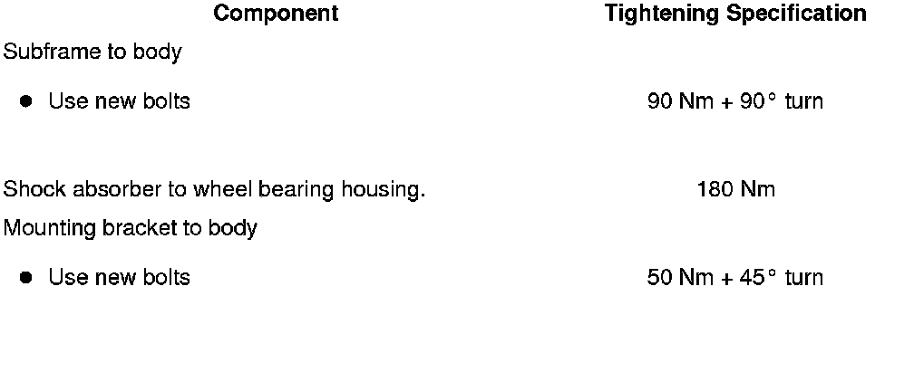- Secure the position of the subframes using 2 (T10096) to 20 Nm.