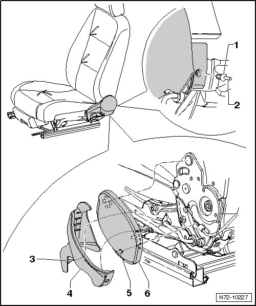 - Release the retaining hook - 3 - and remove the trim - 4 - from the seat.