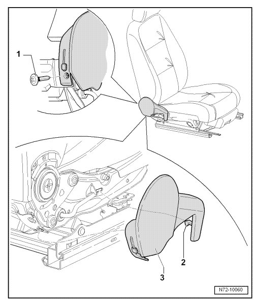 - Press hooks - 2 - upward and remove trim - 3 - from seat.