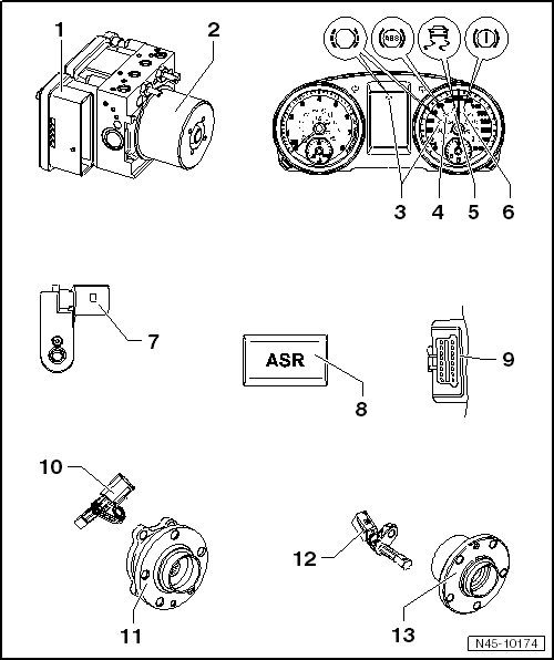 12 - Right Rear ABS Wheel Speed Sensor -G44- and Left Rear ABS Wheel Speed Sensor -G46-