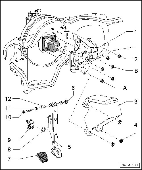 • Removing and installing, refer to => [ Brake Pedal Mounting Bracket ] Brake Pedal Mounting Bracket.