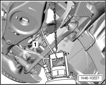 - Connect the bleed hose - 1 - from the bleeder bottle to the brake caliper bleed valve and open the bleed valve.