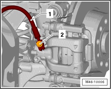 - Remove the brake hose connection - 1 - and the banjo bolt - 2 - from the brake caliper.