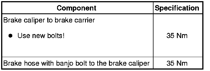 This procedure applies only for replacing or when performing subsequent service work on brake caliper.