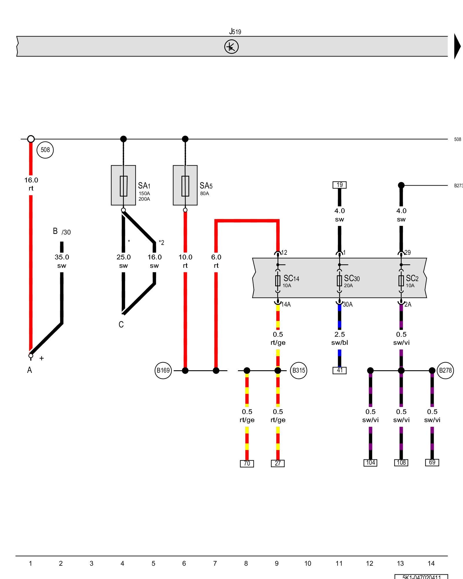 SC14 - Fuse 14 (on fuse panel C) Fuse overview (SA), (SB), (SC)