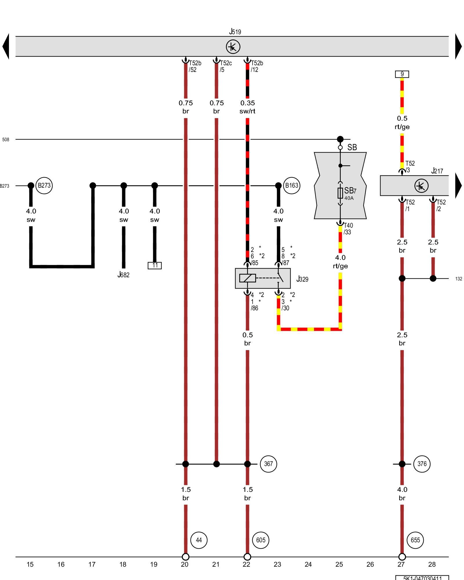 (B163) - Positive connection 1 (15) (in interior wiring harness)