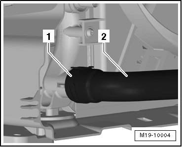 - Open the spring clamp - 1 - and remove the coolant hose - 2 -.