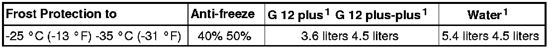 • The amount of G12 plus-plus can be increased if more freeze protection is needed. However, it may only be increased up to 60%, which provides freeze protection down to approximately -40 °C (-40 °F). Otherwise the freeze protection and cooling effect are reduced.