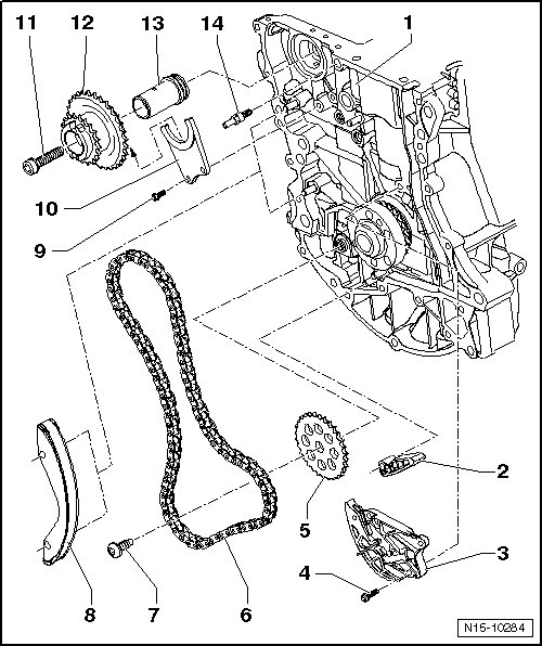 - Remove the chain tensioner - item 3 -.