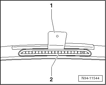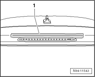 - Place the (T10039/1) - 1 - at the top between the High-mounted brake lamp bulb (M25) - 2 - and the rear lid.