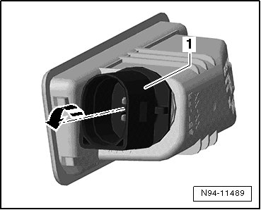 - Turn the bulb socket in - direction of arrow - and pull it out of the license plate lamp.