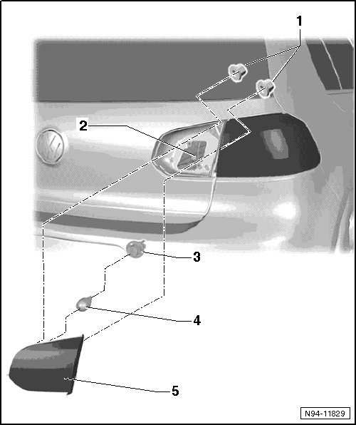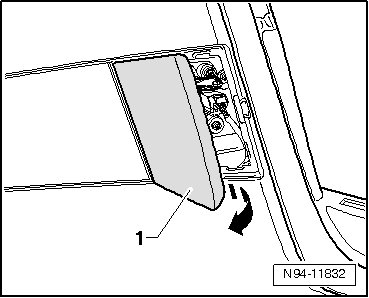 - Remove the tail lamp assembly from the body opening in the rear lid - 1 - in - direction of arrow -.