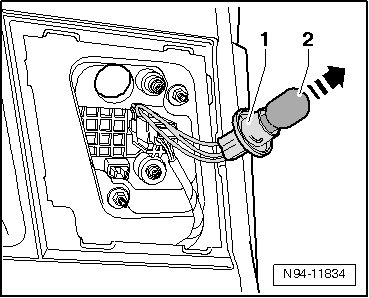 - Carefully remove the right back-up lamp bulb (M17) - 2 - from the bulb holder - 1 - in - direction of arrow -.