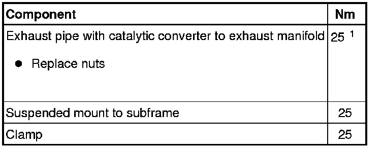 - Remove the exhaust pipe with catalytic converter to exhaust manifold nuts - 2 - and the suspended mount bolts - 3 -.