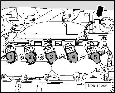 - Disconnect the connector - arrow - from the secondary air injection solenoid valve (N112) , if applicable.