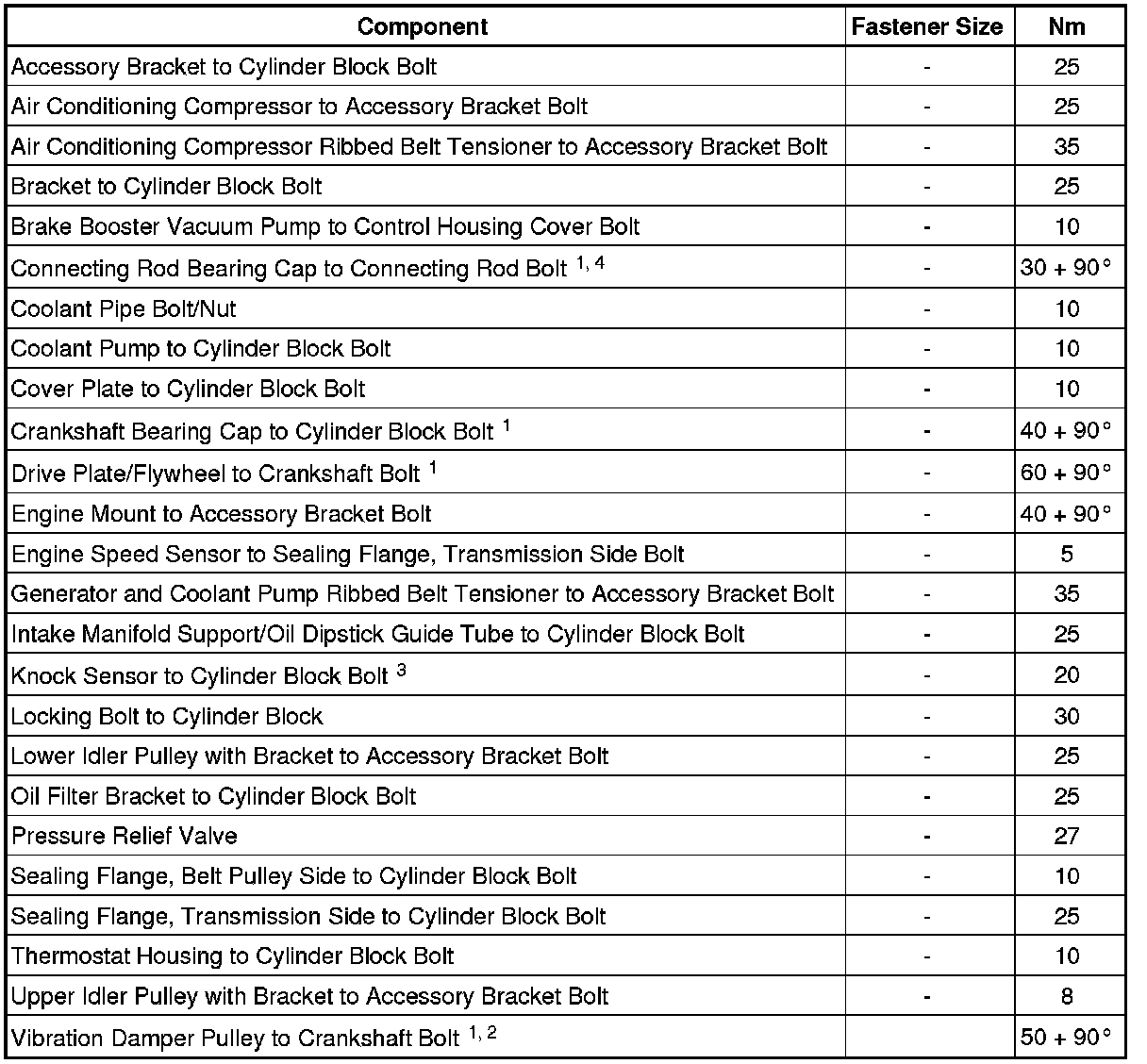 Crankshaft, Cylinder Block - Fastener Tightening Specifications