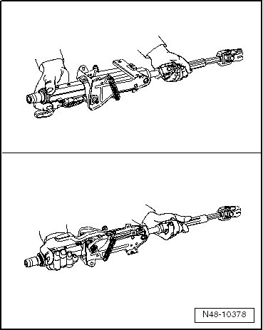 Grasp steering column at upper steering column tube and in area of upper universal joint.
