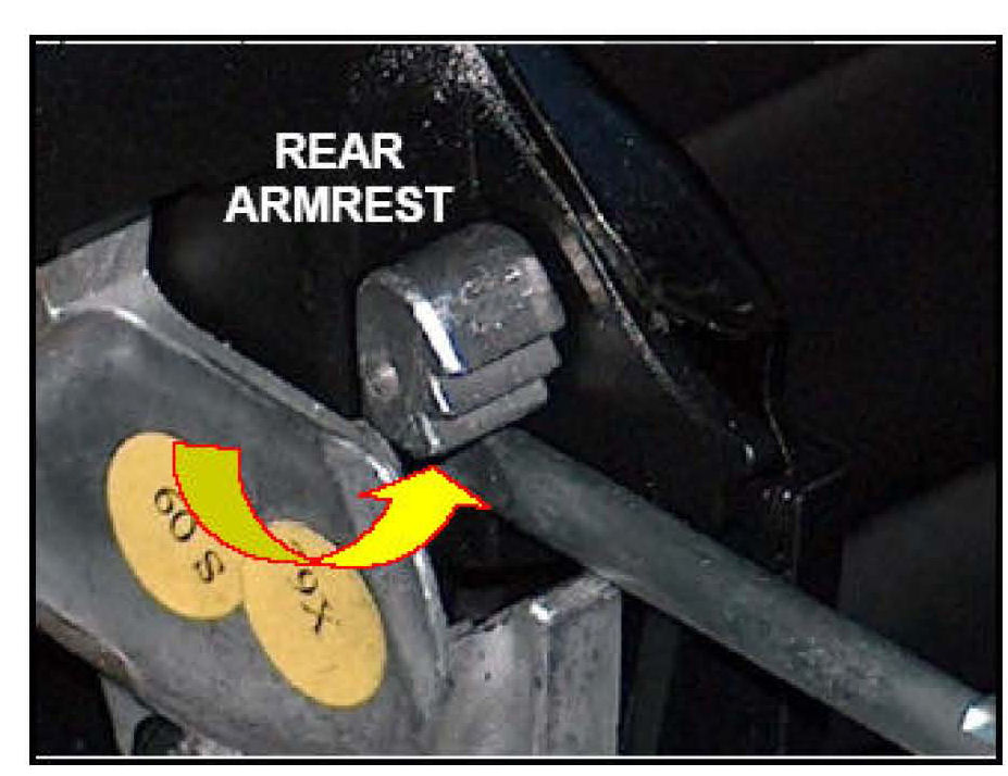 Install updated armrest cover mechanism and jacketed guide pin with spring.
