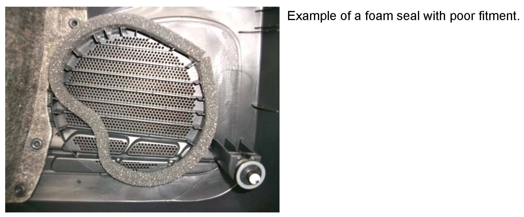 The foam seal between the door trim and door speaker may be incorrectly fitted: