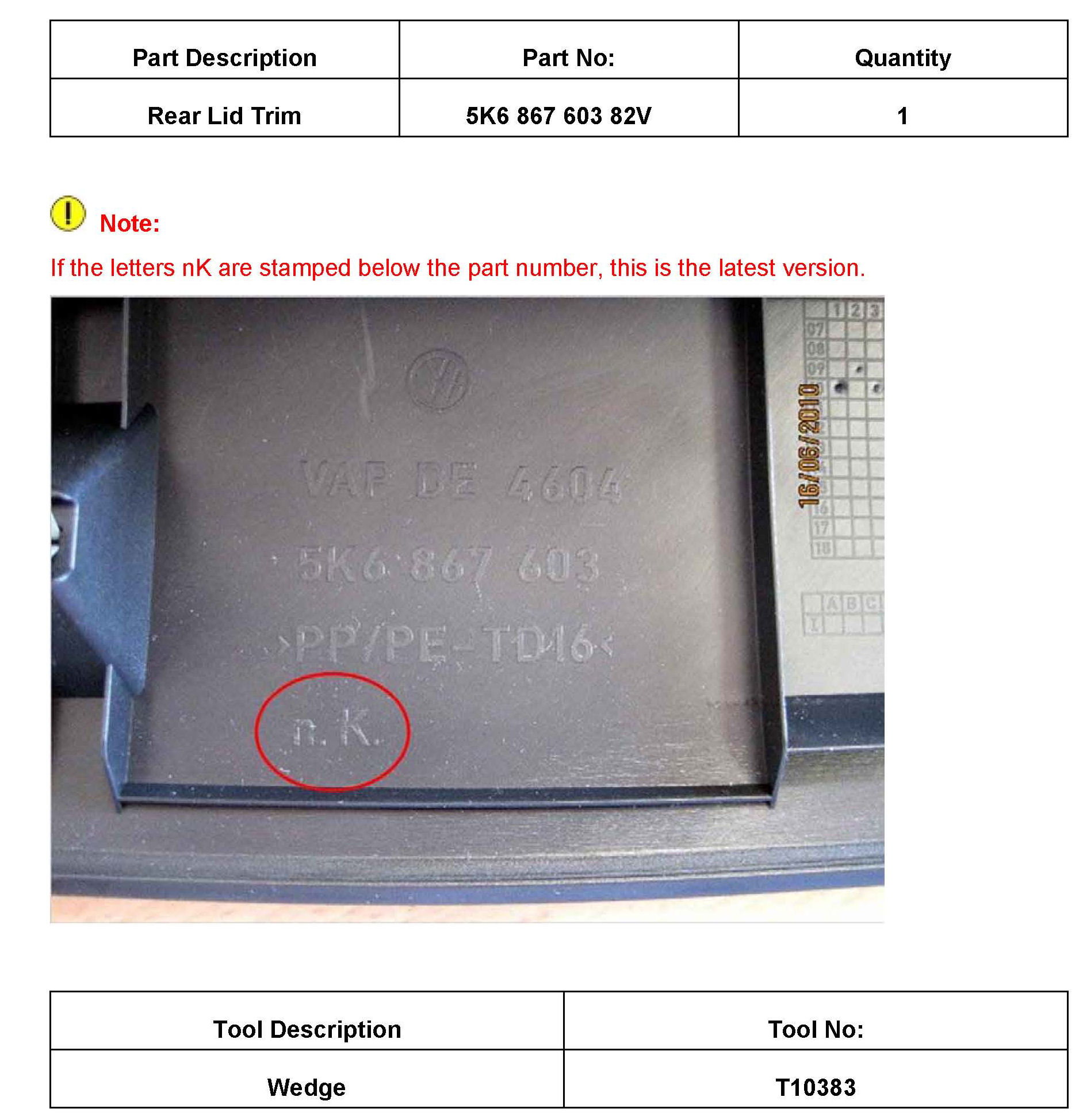 ^ Replace the upper trim panel Part No. 5K6 867 603 82V (nK) on the rear lid, see Repair Manual Group 70 Interior Trim in ElsaWeb.