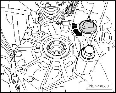 - Push the brake pedal in order to remove the left drive axle bolt - arrow - (second technician required).