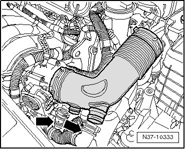 - Disconnect the hoses - arrows - and remove the intake tube from the throttle valve.