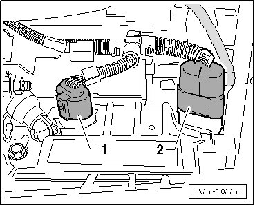 - Remove the connector from the bracket under the starter - 1 - and then disconnect it.