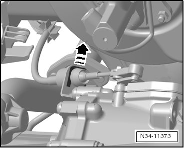 - Pry the cable - 1 - off the selector shaft lever - 3 - using a open end wrench - 2 -.