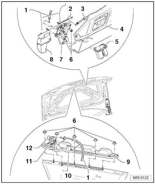 The following are integrated into the rear lid lock unit: