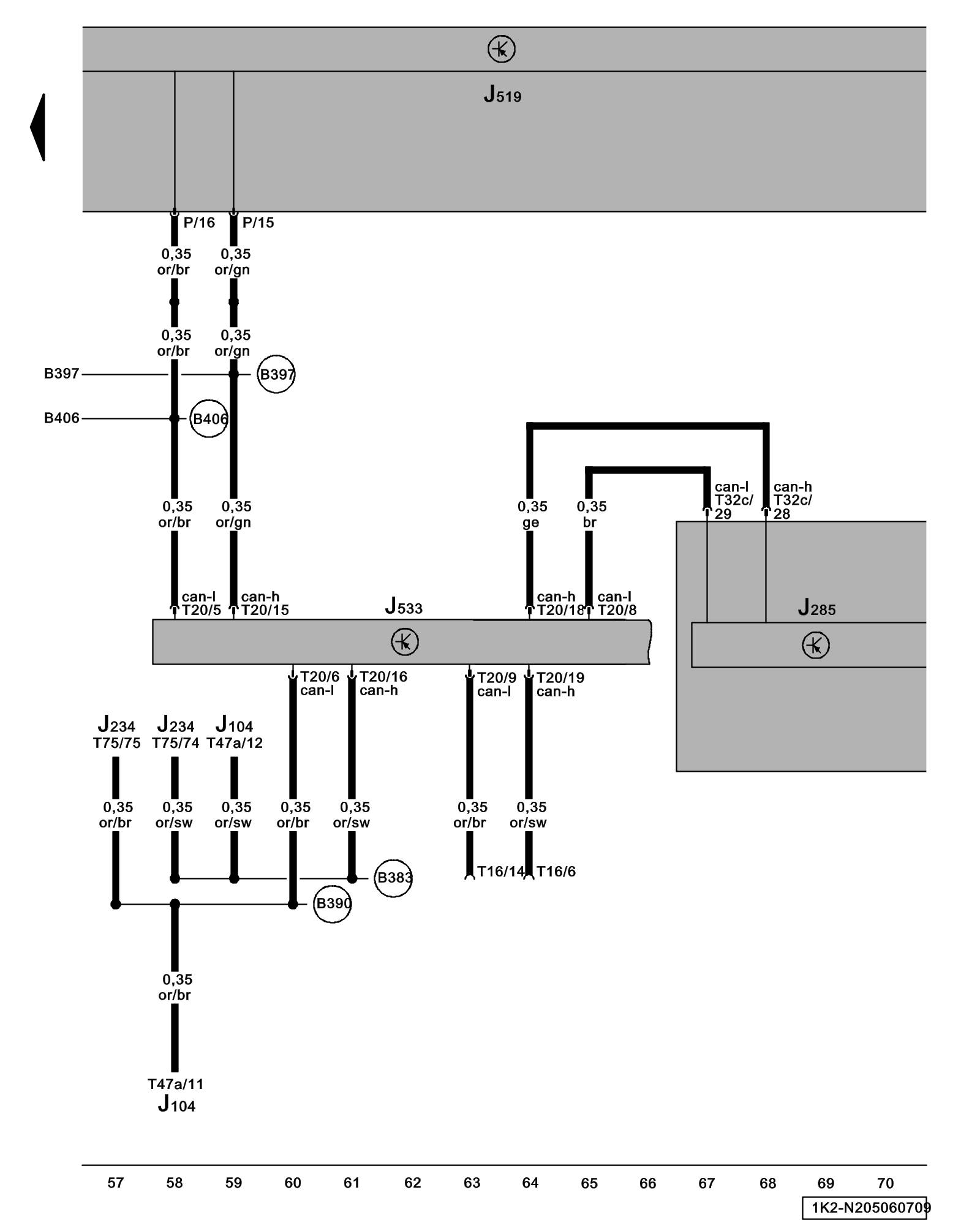 (B397) - Comfort System CAN-Bus High Connection 1 (in main wiring harness)
