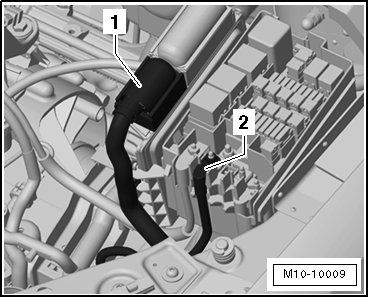 - Disconnect the connector - 2 - from the engine coolant temperature sensor on radiator (G83).