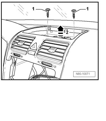 - Remove the center vent - 2 - in - direction of arrow -.