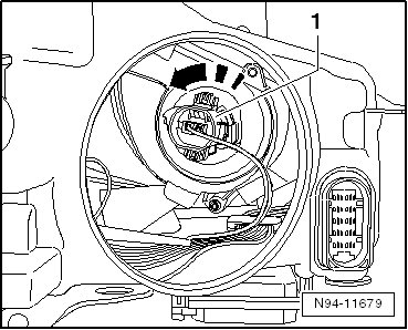 - Turn the bulb socket - 1 - in - direction of arrow - and remove it together with the right front turn signal bulb (M7) from the reflector.