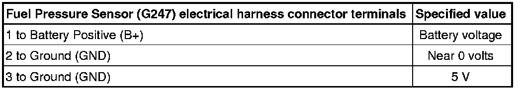- Using a multimeter, check the Fuel Pressure Sensor (G247) view - 1 - electrical harness connector terminals for voltage.